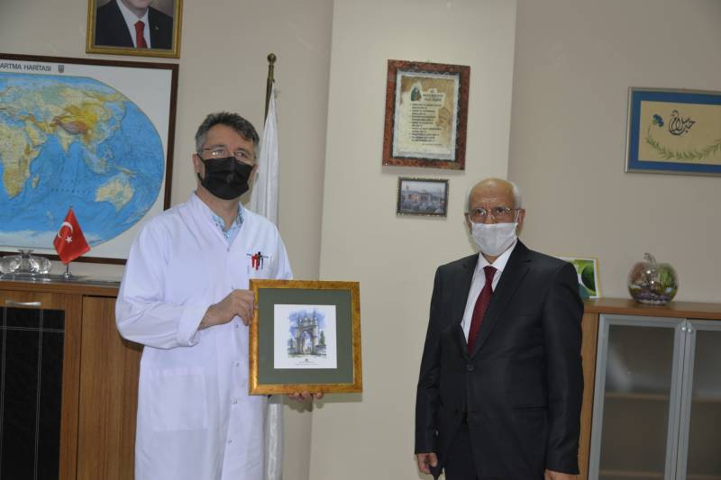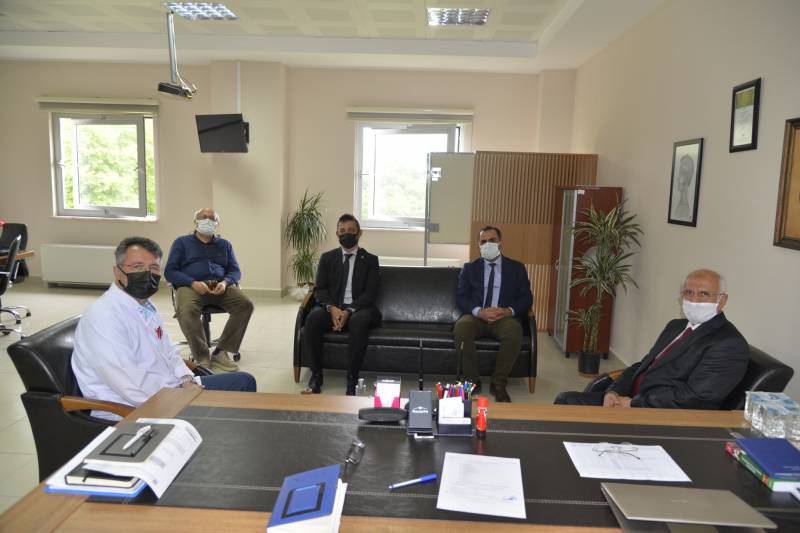 Bilecik Åžeyh Edebali Üniversitesi Tıp Fakültesi Dekanı Prof. Dr. Mahmut BAYKAN, Dekan Yardımcısı Doç. Dr. Rıza DUNDAR ve Fakülte Sekreteri OÄŸuz GÜRCAN fakültemizi ziyaret etti. Heyeti fakültemiz dekanı Prof. Dr. OÄŸuz KARABAY, Dekan Yardımcıları Prof. Dr. Mustafa İhsan USLAN, Prof. Dr. Mehmet Emin BÜYÜKOKUROÄžLU ile Fakülte Sekreteri Kerim İSEN karşıladı. Ziyarette Bilecik Åžeyh Edebali Üniversitesi Tıp Fakültesi Dekanı Prof. Dr. Mahmut BAYKAN yeni eÄŸitim öÄŸretim yılında fakültemizde eÄŸitim görecek öÄŸrenciler, akademik çalışmalar, fiziki ÅŸartlar vb. konularda fikir alışveriÅŸinde bulundular. Toplantının ardından Bilecik Åžeyh Edebali Üniversitesi Tıp Fakültesi Dekanı Prof. Dr. Mahmut BAYKAN Dekan Prof. Dr. OÄŸuz KARABAY’a günün anlamına hediyelerini takdim etti.