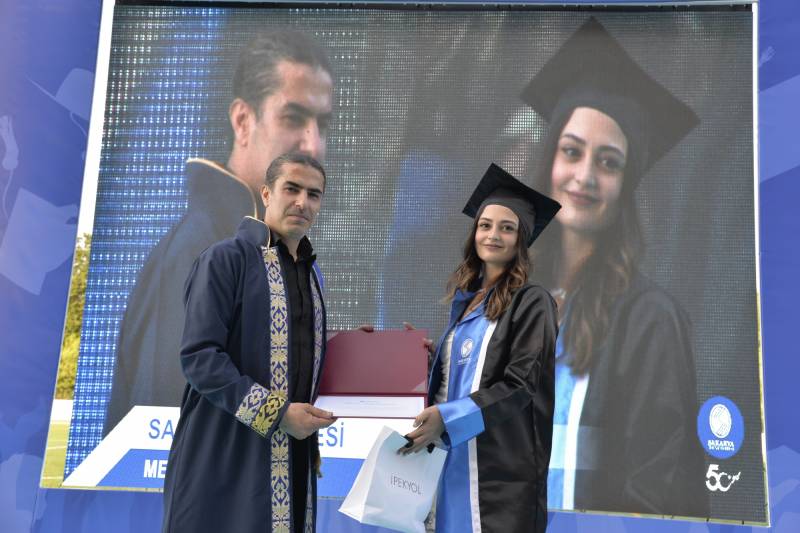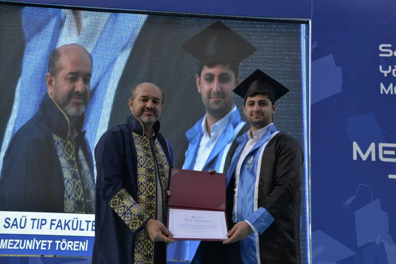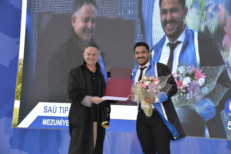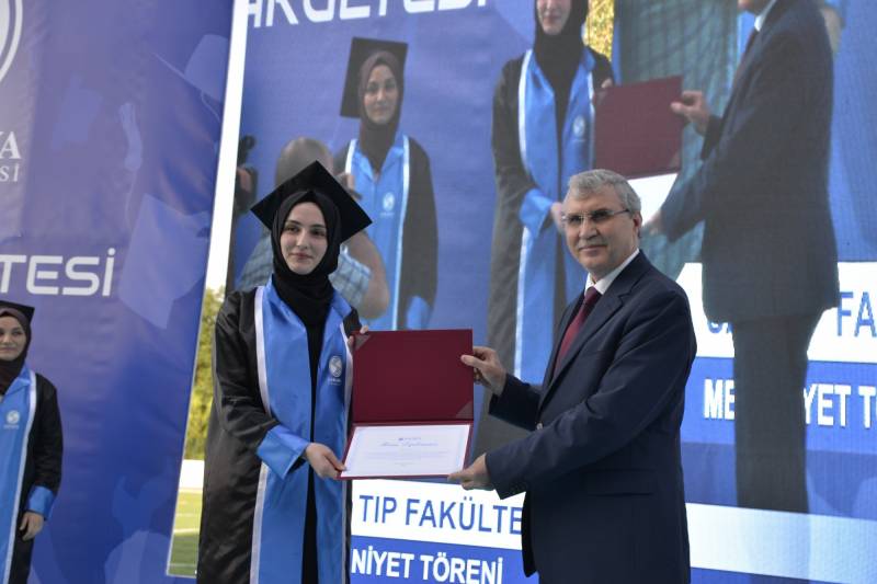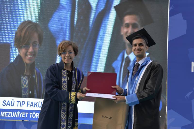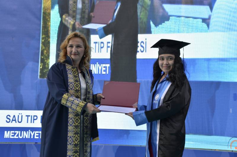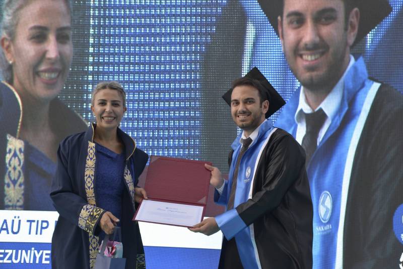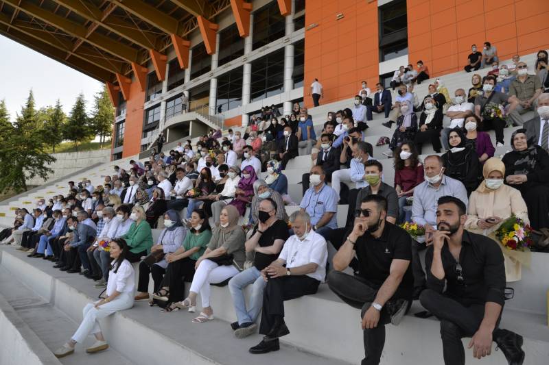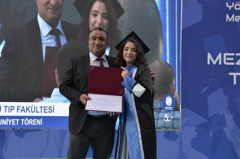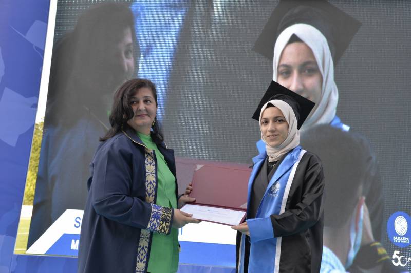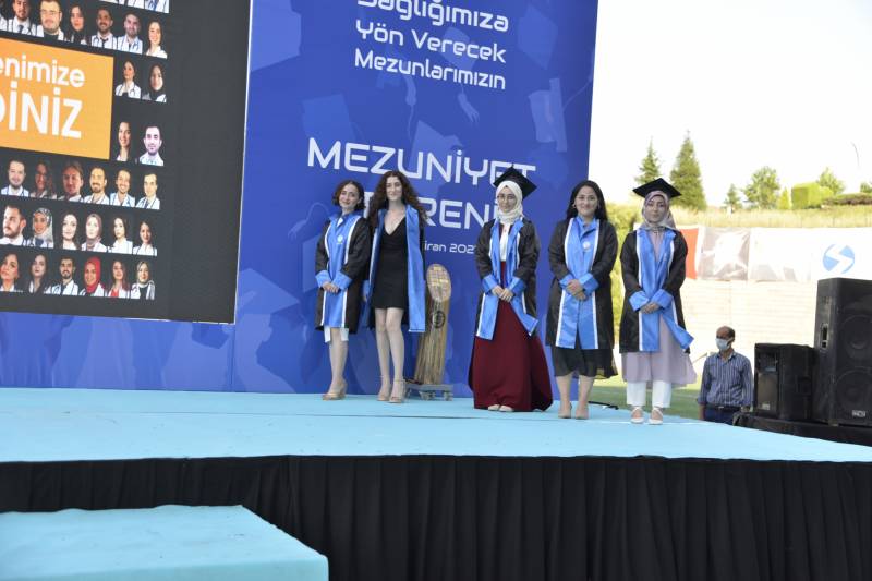 SAÜ’de eÄŸitim gördükten sonra uygulamalı ÅŸekilde hastalara bakmaya devam ederek pandemi servislerinde çalışan ve korona virüs aşısı olan 108 tıp fakültesi öÄŸrencisi pandemi sonrasında ilk kez yüz yüze törenle mezun oldu. Üniversitenin stadyumunda gerçekleÅŸen mezuniyet törenine; Sakarya Vali Yardımcısı Ersin EmiroÄŸlu, AK Parti İl BaÅŸkanı Yunus Tever, Sakarya BüyükÅŸehir Belediye BaÅŸkanı Ekrem Yüce, SAÜ Rektör Yardımcısı Prof. Dr. Hatem Akbulut, Prof. Dr. Barış Tamer Tonguç, Prof. Dr. Temel Gürdal, SAÜ Genel Sekreteri Dr. ÖÄŸr. Üyesi YaÅŸar Kahraman, SUBÜ Rektör Yardımcısı Prof. Dr. Ali Fuat Boz, Tıp Fakültesi Dekanı Prof. Dr. OÄŸuz Karabay, SaÄŸlık İl Müdürü Doç. Dr. Aziz ÖÄŸütlü, SEAH BaÅŸhekimi Doç. Dr. Fikret Halis, mezuniyet heyecanı yaÅŸayan öÄŸrenciler ve yakınları katıldı. Canlı müzik dinletisiyle baÅŸlayan tören İstiklal Marşı ve Saygı DuruÅŸu ile devam etti. Açılış konuÅŸmasının ardından bölümünü birincilikle bitiren ve doktor unvanı kazanan Sümeyye Karapınar, baÅŸarı öyküsünden söz ederek törende bulunanlara duygusal anlar yaÅŸattı.
