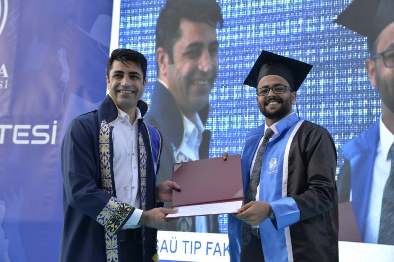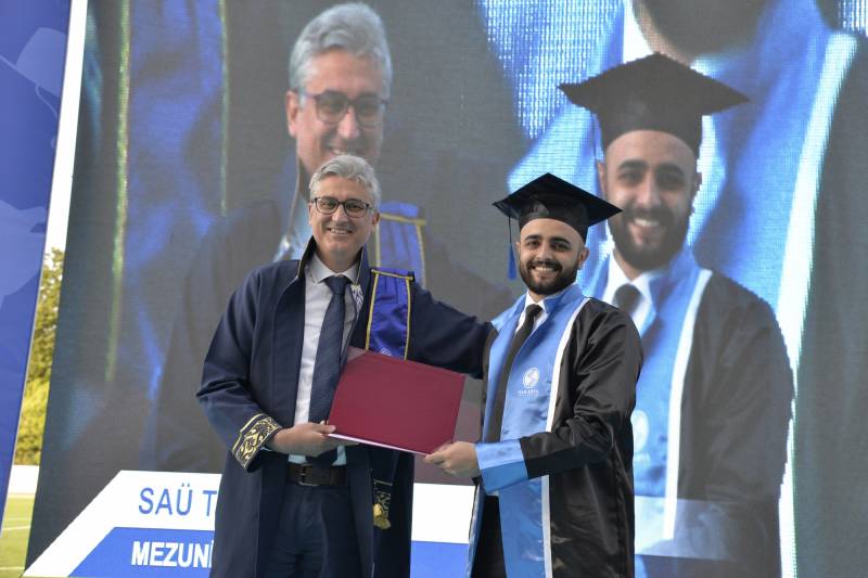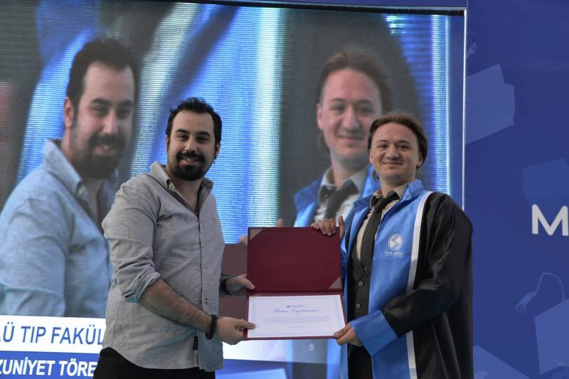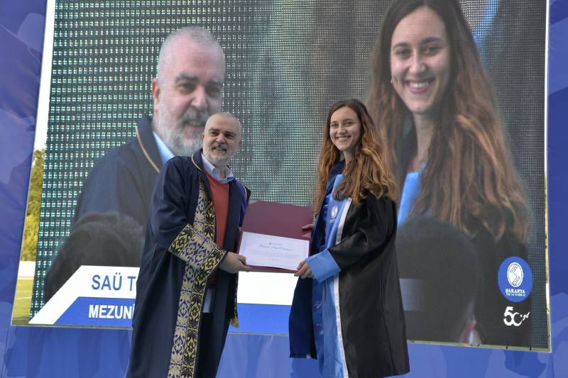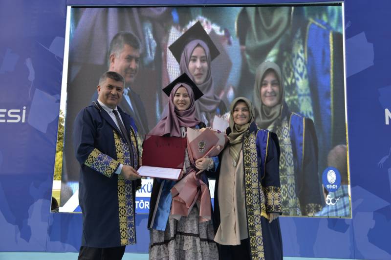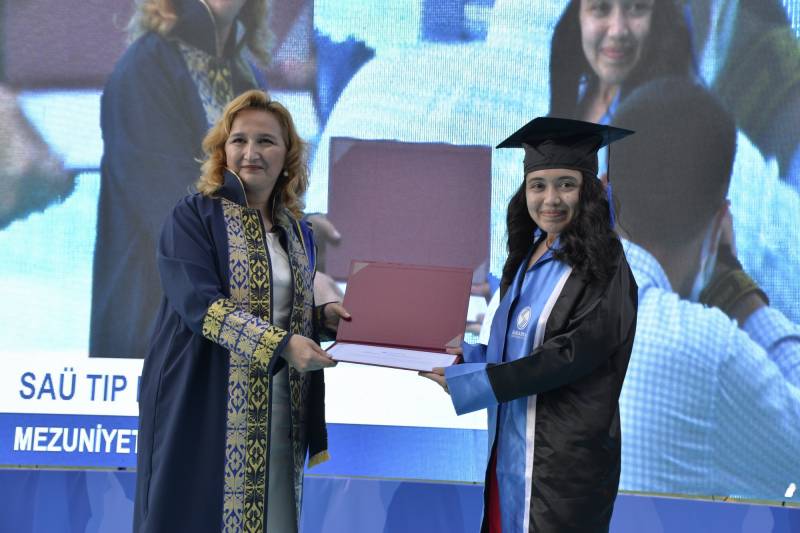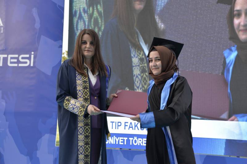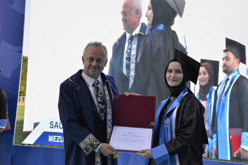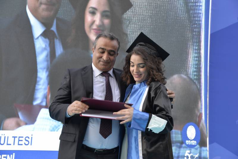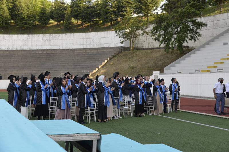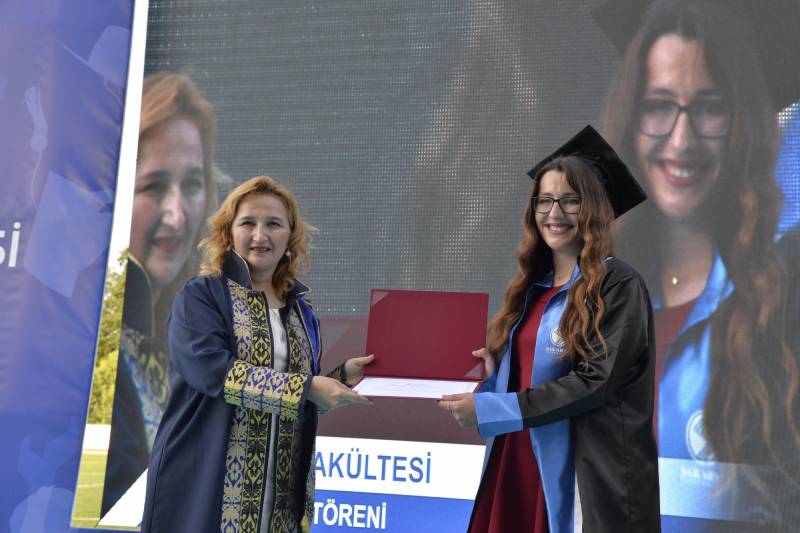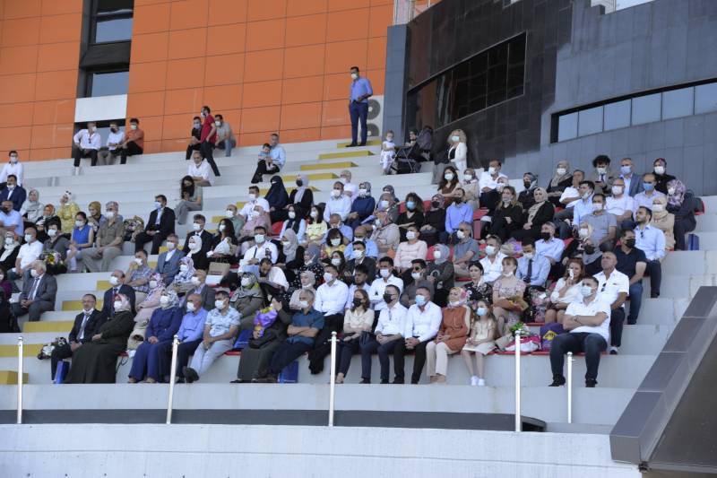 SAÜ’de eÄŸitim gördükten sonra uygulamalı ÅŸekilde hastalara bakmaya devam ederek pandemi servislerinde çalışan ve korona virüs aşısı olan 108 tıp fakültesi öÄŸrencisi pandemi sonrasında ilk kez yüz yüze törenle mezun oldu. Üniversitenin stadyumunda gerçekleÅŸen mezuniyet törenine; Sakarya Vali Yardımcısı Ersin EmiroÄŸlu, AK Parti İl BaÅŸkanı Yunus Tever, Sakarya BüyükÅŸehir Belediye BaÅŸkanı Ekrem Yüce, SAÜ Rektör Yardımcısı Prof. Dr. Hatem Akbulut, Prof. Dr. Barış Tamer Tonguç, Prof. Dr. Temel Gürdal, SAÜ Genel Sekreteri Dr. ÖÄŸr. Üyesi YaÅŸar Kahraman, SUBÜ Rektör Yardımcısı Prof. Dr. Ali Fuat Boz, Tıp Fakültesi Dekanı Prof. Dr. OÄŸuz Karabay, SaÄŸlık İl Müdürü Doç. Dr. Aziz ÖÄŸütlü, SEAH BaÅŸhekimi Doç. Dr. Fikret Halis, mezuniyet heyecanı yaÅŸayan öÄŸrenciler ve yakınları katıldı. Canlı müzik dinletisiyle baÅŸlayan tören İstiklal Marşı ve Saygı DuruÅŸu ile devam etti. Açılış konuÅŸmasının ardından bölümünü birincilikle bitiren ve doktor unvanı kazanan Sümeyye Karapınar, baÅŸarı öyküsünden söz ederek törende bulunanlara duygusal anlar yaÅŸattı.