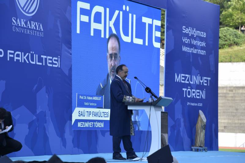 ÖÄŸrencilerin aşı olmalarından ve yüz yüze eÄŸitim görmelerinden dolayı töreni gerçekleÅŸtirdiklerini belirten SAÜ Rektör Yardımcısı Prof. Dr. Hatem Akbulut, “Bu sene sevinçliyiz fakat sevincimiz biraz buruk. Bunun temel nedeni de mezuniyet törenini maalesef tüm mezunlarımıza ÅŸuan için yayamadık. Fakat tıp fakültesi öÄŸrencilerimizin özellikle son sınıf öÄŸrencilerimizin yüz yüze eÄŸitim görmesi bu dönem için ve bunun yanında hepsinin aşı süreçlerinin tamamlanmasından dolayı bu ÅŸekilde mezuniyet töreninin yapılması üniversitemiz açısından herhangi bir endiÅŸe oluÅŸturmadığı için törenimizi yapmaya karar verdik. Umuyoruz ki; aşı uygulaması 18 yaÅŸa kadar indirildiÄŸi içinde diÄŸer mezunlarımızın da törenlerini en kısa sürede yine yüz yüze yapma ÅŸansına sahip olabiliriz. Aldıkları eÄŸitimin bir sonucu olarak bugün saÄŸlık ordusuna katılacak olan 108 genç hekimimiz topluma en iyi ÅŸekilde hizmet edecektir, buna inancımız tamdır” ÅŸeklinde konuÅŸtu.