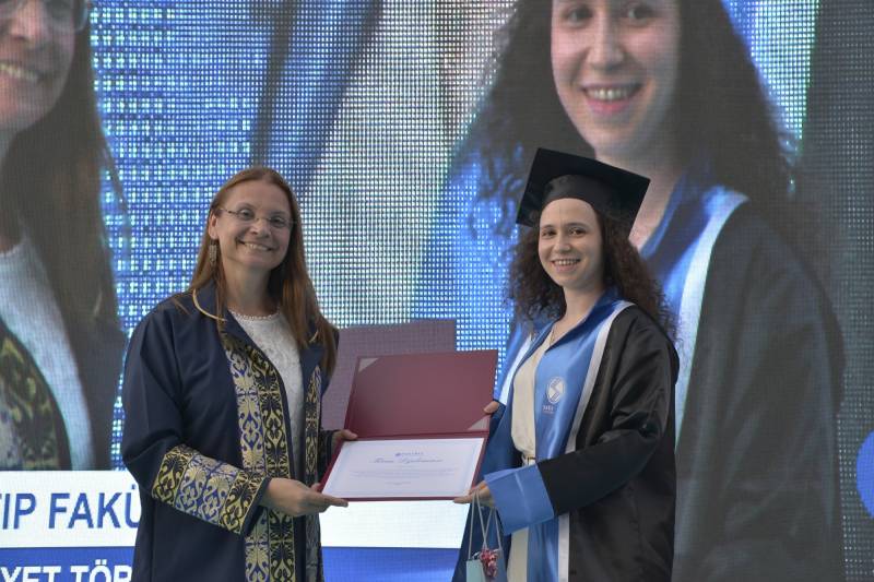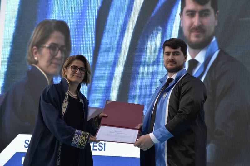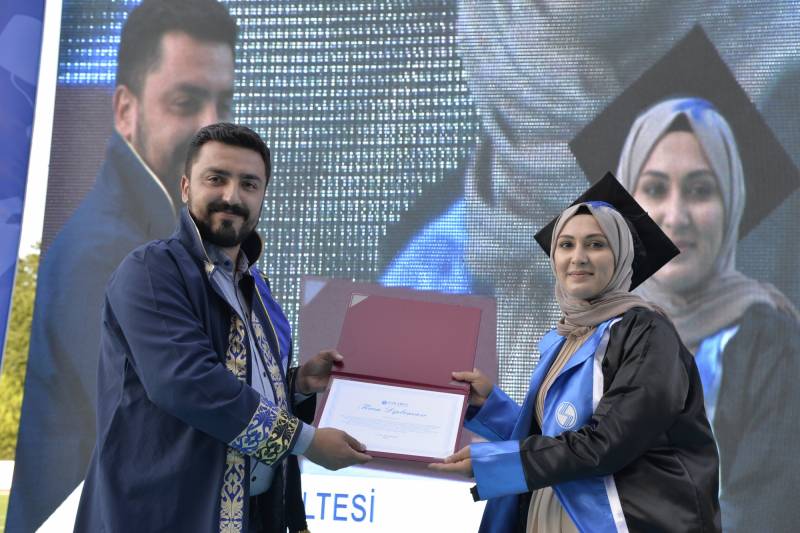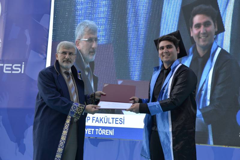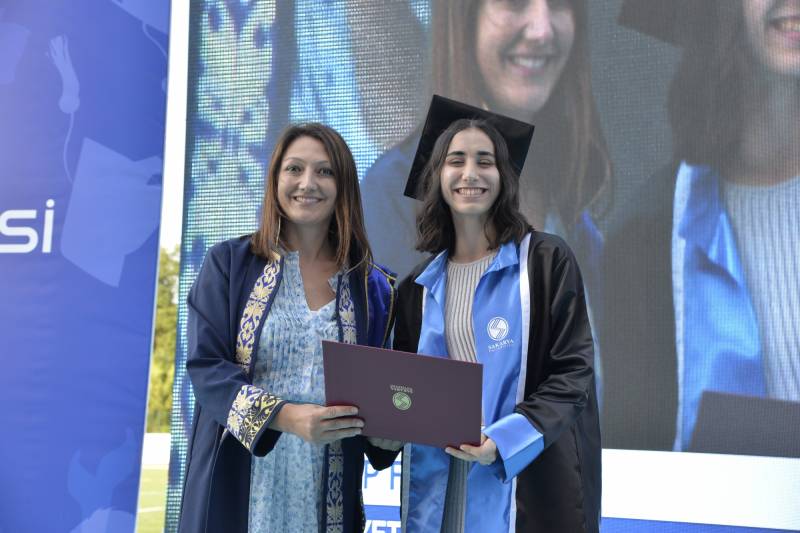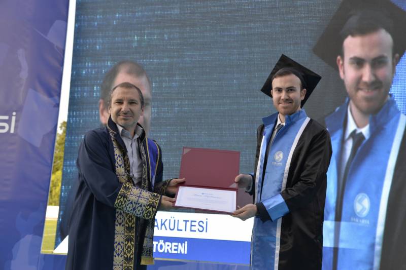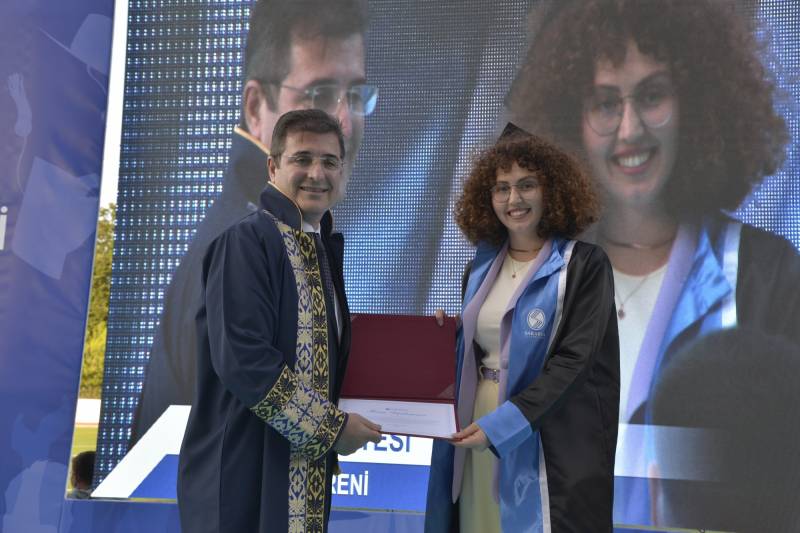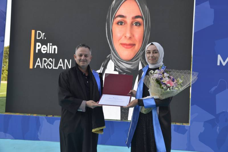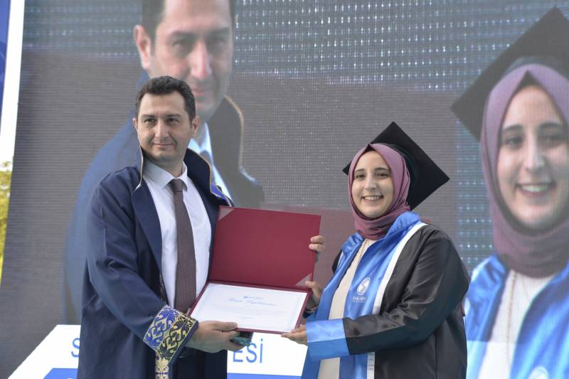Sakarya Üniversitesi 2020-2021 eÄŸitim ve öÄŸretim yılı Tıp Fakültesi bölüm birincisi Dr. Sümeyye Karapınar, “6 yıllık serüvenimizin sonuna geldik. Bizler bugün hekim olmanın mutluluÄŸu, heyecanı ve gururu içerisindeyiz. Bu zorlu serüvende, bize iyi hekim olmak yönünde büyük emeÄŸi geçen, ufkumuzu geniÅŸleten, bize örnek olan, kapılarını bize hep açık tutan, bildikleri ve yetenekleri karşısında hayretler içerisinde kaldığımız, sorularımız ile meraklarımızı hep sabırla karşılayan çok deÄŸerli hocalarıma ÅŸahsım ve bütün arkadaÅŸlarım adına teÅŸekkür ediyorum” dedi.