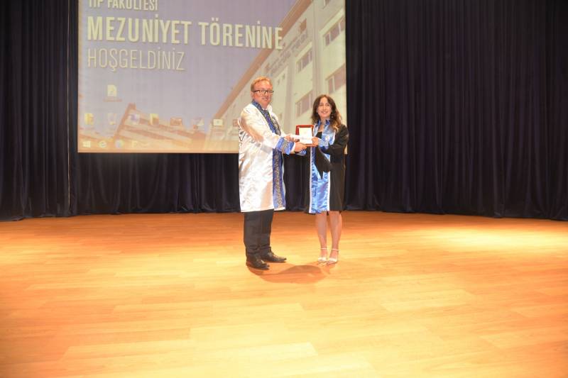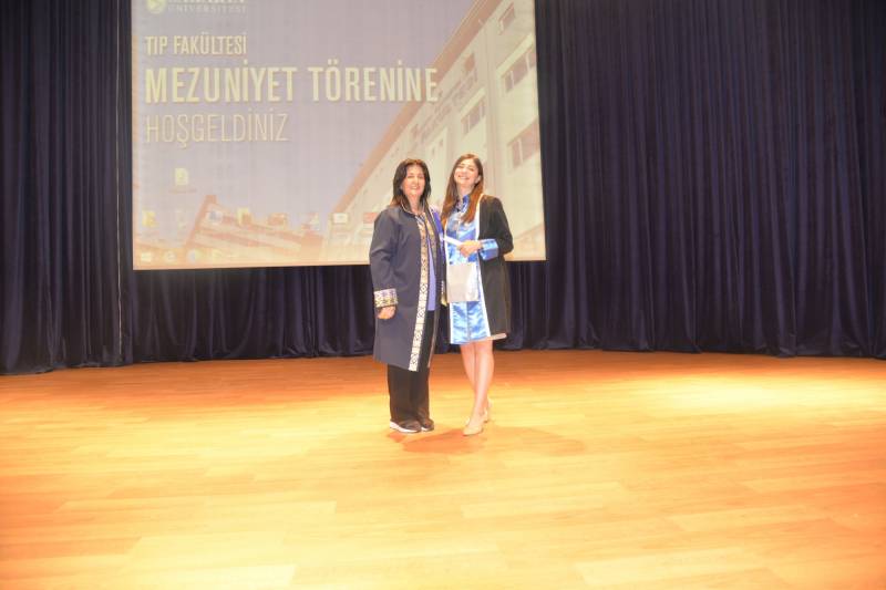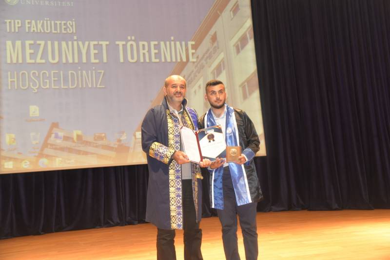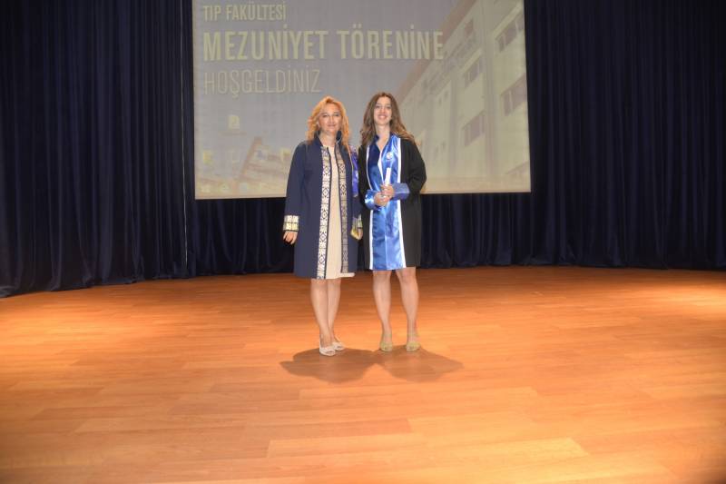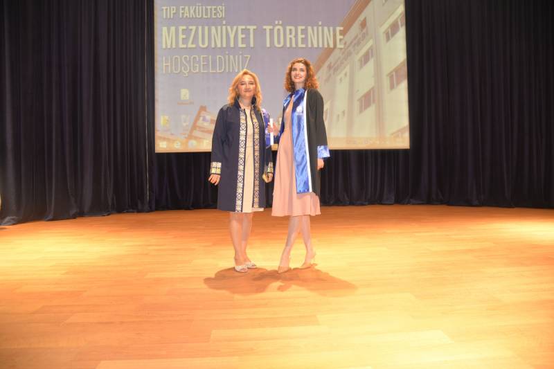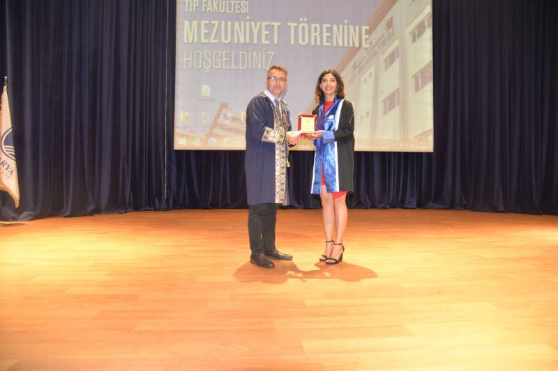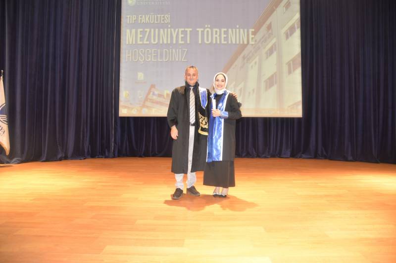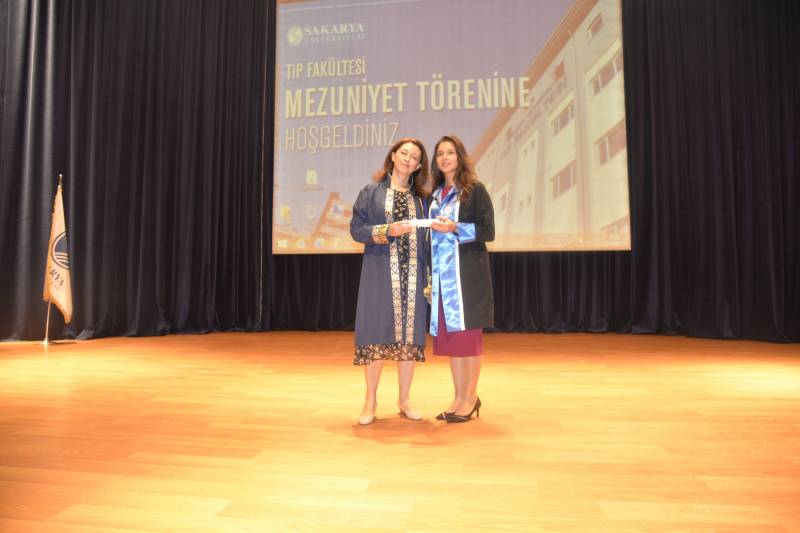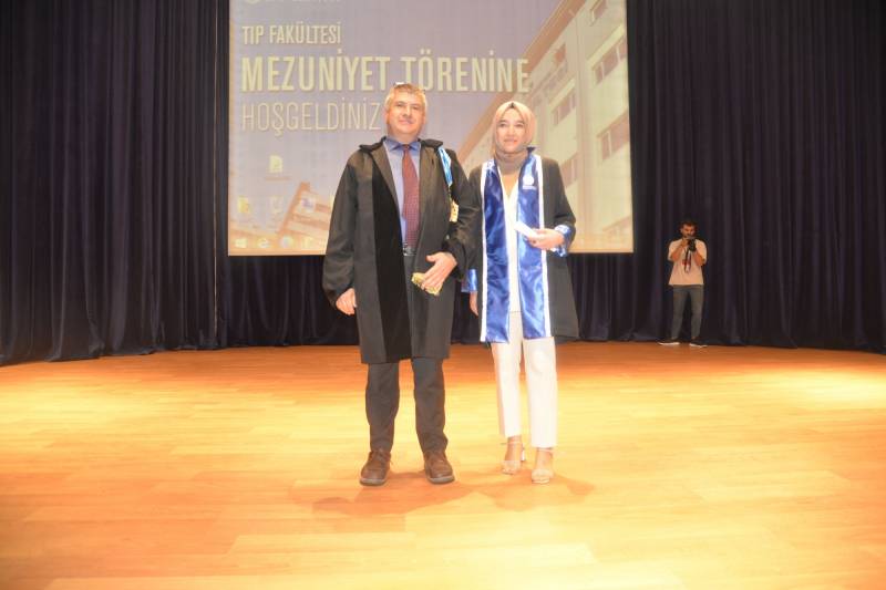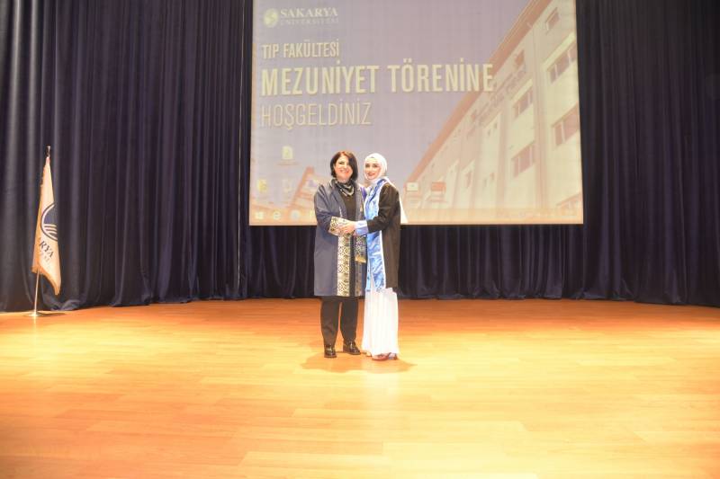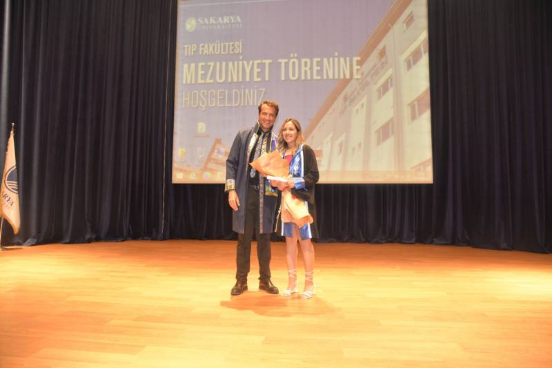 Tıp Fakültesi 2021-2022 EÄŸitim ÖÄŸretim Yılı birincisi Dr. Edanur Aslan yaptığı konuÅŸmada, “Hayalini kurduÄŸum, bu hayale ulaÅŸmak için yıllarca emek verdiÄŸim ve sonunda hekimlik mesleÄŸine ilk adımlarımı attığım yerin, doÄŸup büyüdüÄŸüm yerde bulunan Sakarya Üniversitesi Tıp Fakültesi olması beni çok mutlu etti. Bugün bu kürsüde bu konuÅŸmayı yaptığım için çok gururluyum.” ifadelerini kullandı. Hem kendi adına hem de mezun arkadaÅŸları adına, altı yıllık zorlu yolcuklarında yanlarında bulunan tüm ailelere ve hocalara teÅŸekkür eden Dr. Aslan, “Hekimlik bir sanat ve yaÅŸayış biçimidir. Hastalarına ÅŸifa olmak için bu mesleÄŸi seçmiÅŸ tüm arkadaÅŸlarıma, meslektaÅŸlarıma baÅŸarılar diliyorum.” dedi.