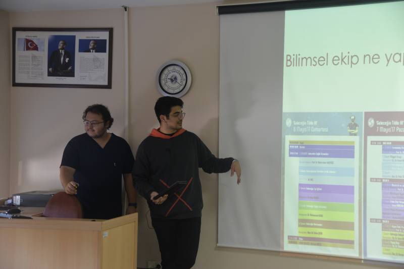 Fakültemiz 2022-2023 EÄŸitim ÖÄŸretim Yılı Dönem 1 öÄŸrencilerimize yönelik oryantasyon eÄŸitimi yapıldı. Programda fakülte Dekanımız Prof. Dr. OÄŸuz KARABAY yeni kazanan öÄŸrencilerimize iÅŸleyiÅŸ ve sistem hakkında detaylı bilgiler verdi. Ardından EÄŸitim Koordinatörümüz Prof. Dr. Mustafa İhsan USLAN eÄŸitim sistemi, yönergeler, akademik program, web sayfası hakkında bilgiler vermesinin ardından söz alan Dönem 1 Koordinatörü Doç. Dr. Gamze GÜNEY ESKİLER AR-GE çalışmaları, TÜBİTAK Projeleri hakkında bilgilendirme yaptı. 2023 yılı içerisinde yapılacak olan Tıp Kongresi ve bunu gerçekleÅŸtirecek SAÜTTAT ekibinin tanıtımı ile süreç hakkında bilgilendirmeleri Dr. ÖÄŸr. Üyesi Esra ÇİFTÇİ gerçekleÅŸtirdi. SAÜTATT baÅŸkanı İnt. Dr. Fatih ÇİÇEK topluluk hakkında kısa bilgi verdikten sonra ekipte yer alan diÄŸer ekip liderleride kısa sunumlar yaparak kendilerini ve süreci anlattılar.
