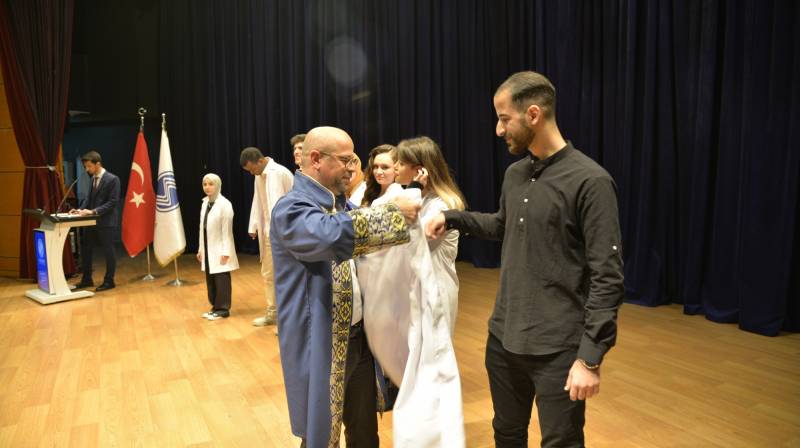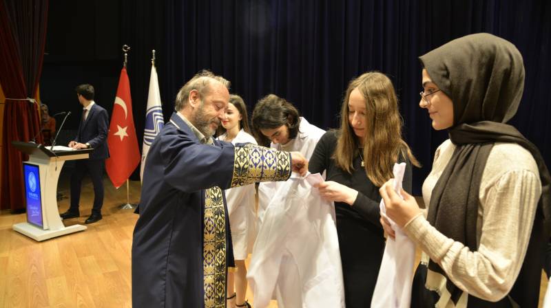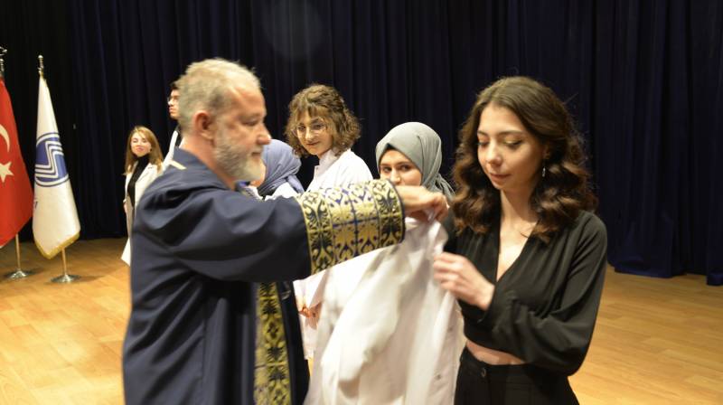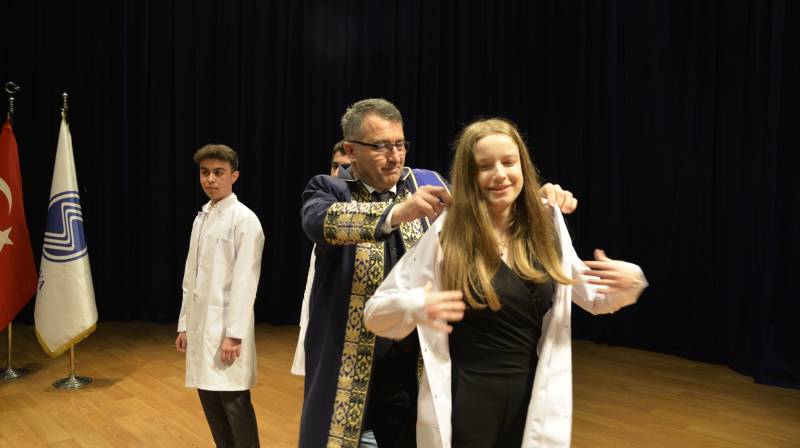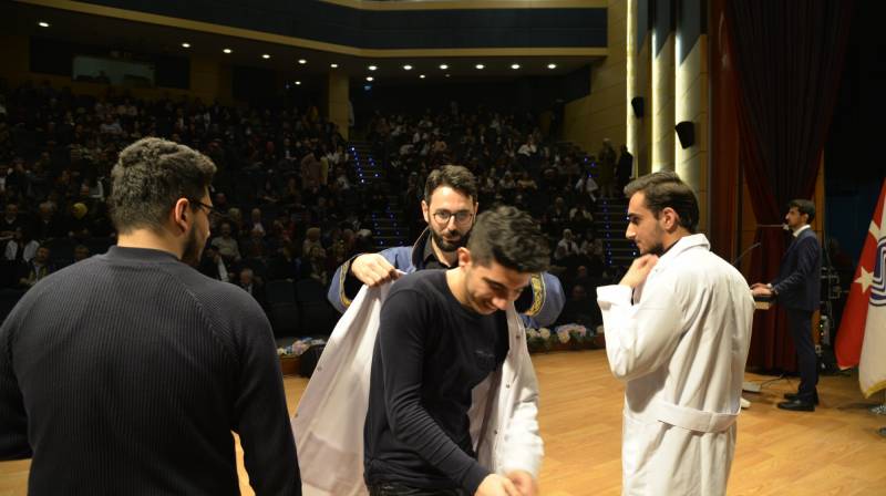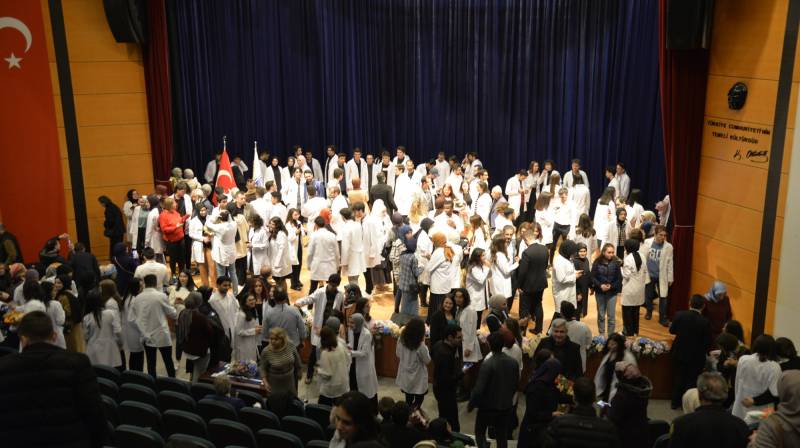 Tören, Tıp Fakültesi birinci sınıf öÄŸrencilerine beyaz önlük giydirilmesinin ardından sona erdi.