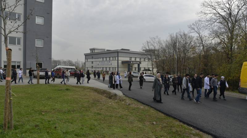 Tıp Fakültesi Morfoloji binasında Deprem, Tahliye ve Yangın Tatbikatı gerçekleÅŸtirildi. GerçekleÅŸtirilen tatbikatın çalan İlk siren ile birlikte bina içerisinde bulunana idari, akademik personel ve öÄŸrenciler güvenli noktalarda 20 saniye boyunca çök-kapan-tutun komutunu yerine getirdikten sonra, 2. siren ile birliktetüm personel ve öÄŸrenciler binadan hızlı bir ÅŸekilde tahliye edilerek güvenli alanında toplanılarak tatbikat sonlandırıldı.