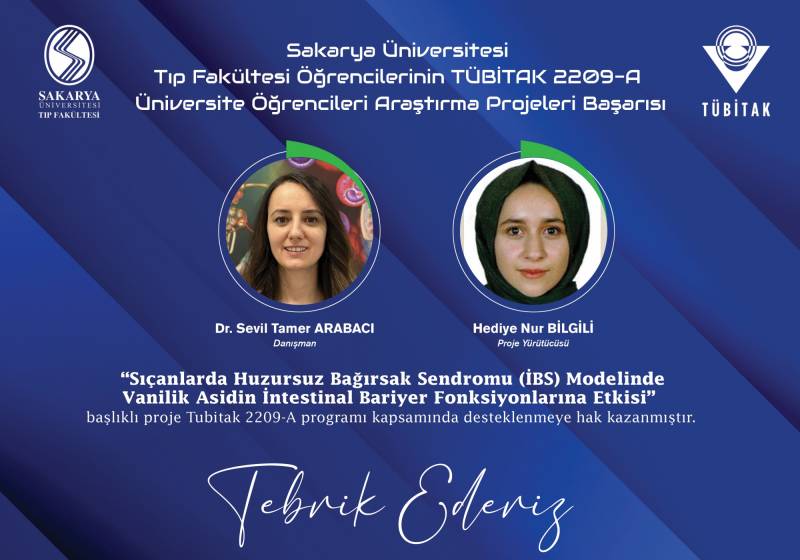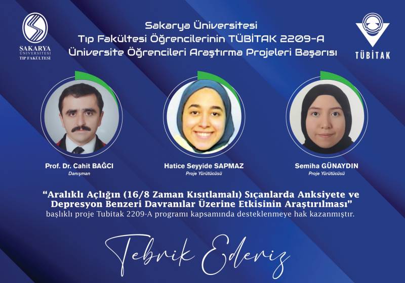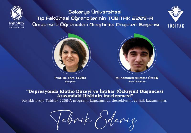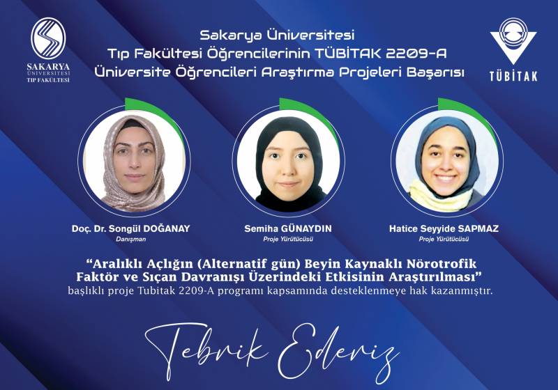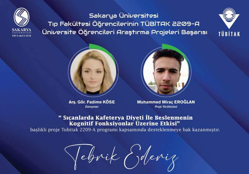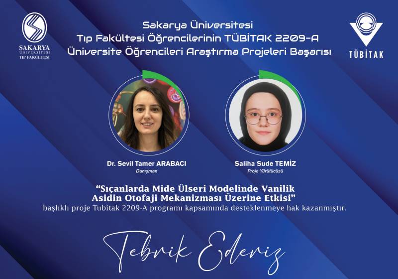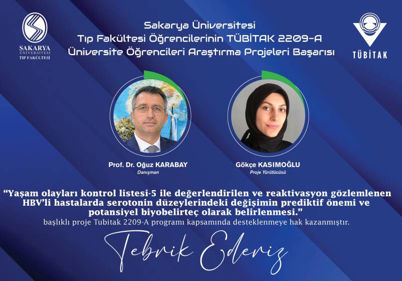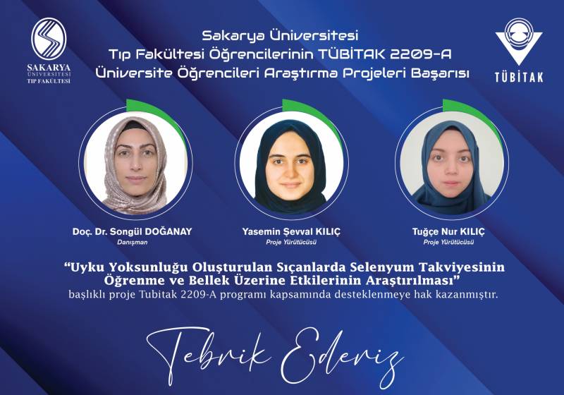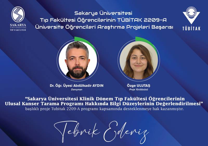 Sakarya Üniversitesi Tıp Fakültesi ÖÄŸrencilerinin TÜBİTAK 22O9-A Üniversite ÖÄŸrencileri AraÅŸtırma Projeleri BaÅŸarıları ekli dosyada belirtilmiÅŸtir. GeliÅŸtirmiÅŸ oldukları projelerinden dolayı hocalarımızı ve öÄŸrencilerimizi tebrik ediyoruz.