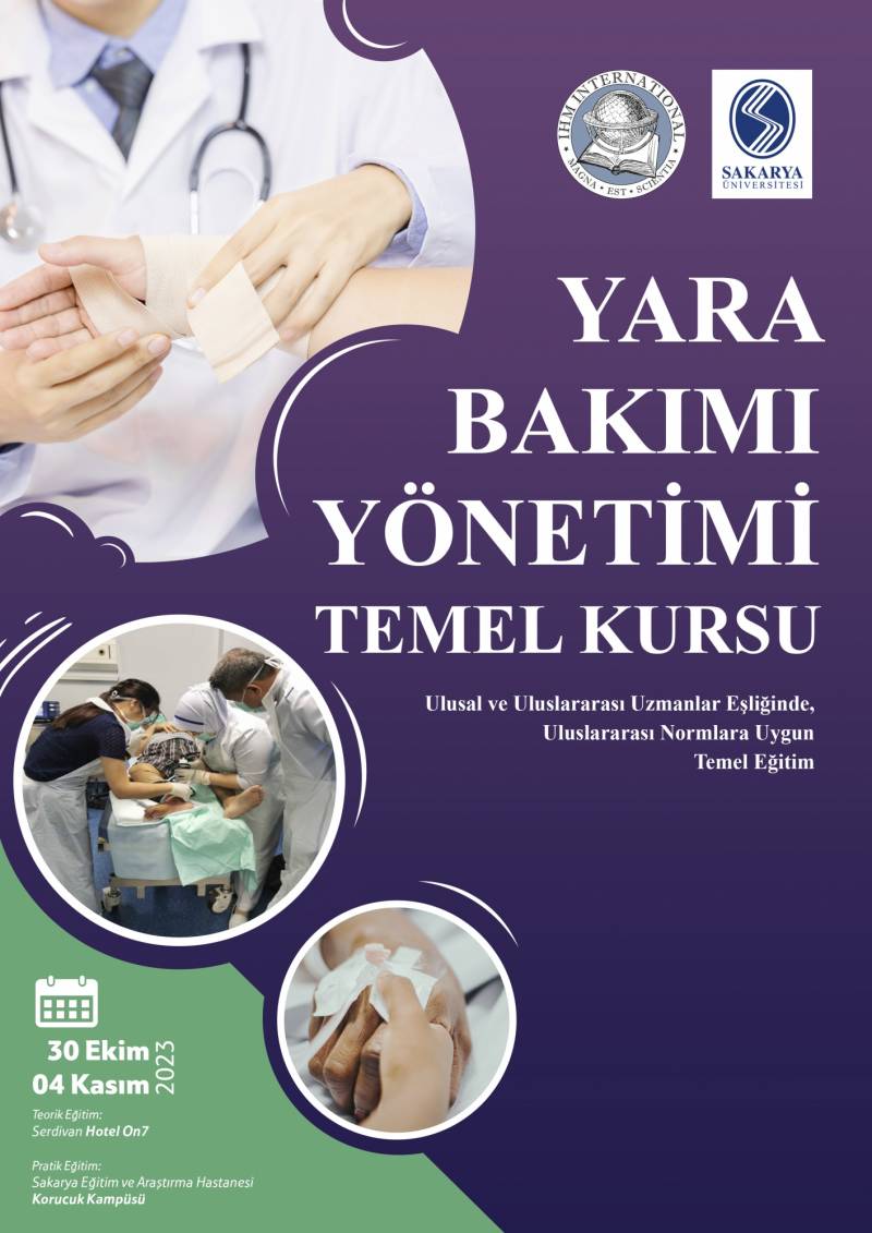 Yara Bakımı Yönetimi Temel (WCMB) kursu, IHM International ve Sakarya Üniversitesi Tıp Fakültesi iÅŸbirliÄŸinde, Sakarya EÄŸitim ve AraÅŸtırma Hastanesi Yara Merkezi, Dr. Alper Erkin ve IHM tıbbi ve bilimsel kurulu ile yakın iÅŸbirliÄŸi içinde 30 Ekim -04 Kasım 2023 tarihleri arasında gerçekleÅŸtirilecektir.
