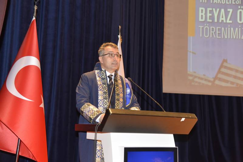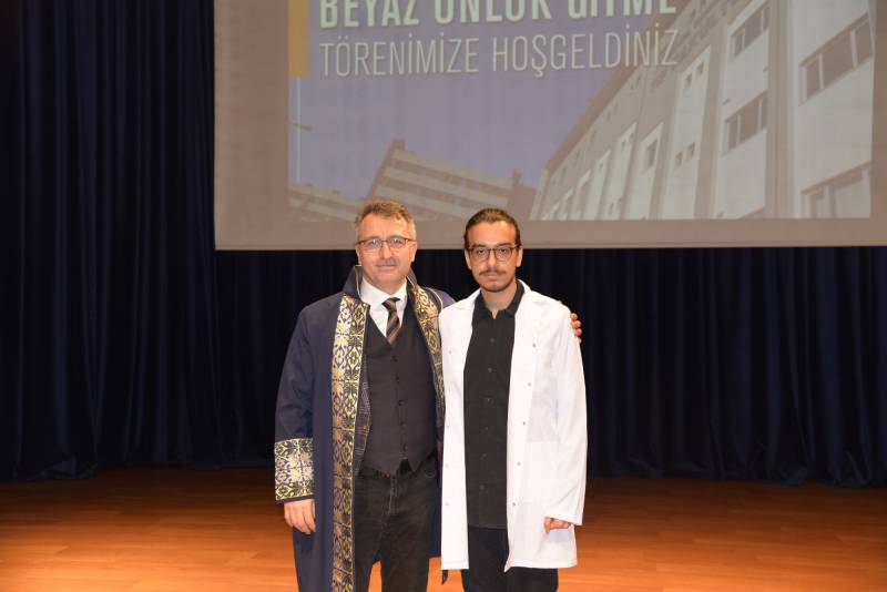 Törende yaptığı konuÅŸmasında Tıp Fakültesi Dekanı Prof. Dr. OÄŸuz Karabay , “Bugün bizler için çok mutlu bir gün, Tıp Fakültesini yeni kazanan öÄŸrencilerimiz bugün beyaz önlüklerini giyecekler. Beyaz önlük, temizliÄŸi ve saflığı temsil eder. Beyaz önlük, hastanın kanı ve kiriyle pislenmez. Sizde beyaz önlük olduÄŸu sürece hastalarınızda size güvenle bakacaktır. Fakülteden aldığınız eÄŸitimle yetinmeyerek kendinizi geliÅŸtirmelisiniz ” ifadelerine yer verdi.