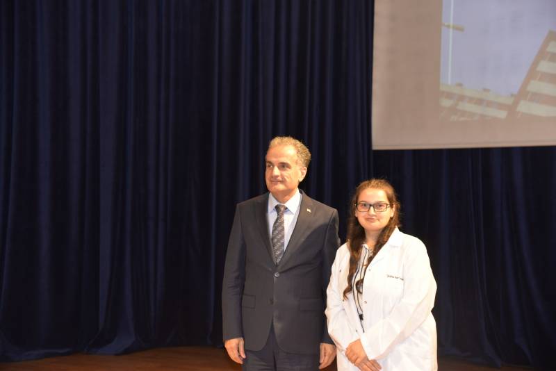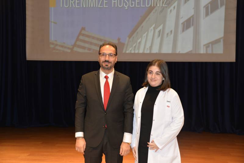 Tıp Fakültesi ÖÄŸrencileri adına konuÅŸma yapan Åžeyma Nur CoÅŸkuner, “ Bizim hekim olma heyecanımıza ortak olup burada olan ailelerimize teÅŸekkür ediyoruz. EÄŸitim öÄŸretim hayatında bizlere yardımcı olacak olan hocalarımıza ayrıca teÅŸekkür ediyoruz. SaÄŸlıkta ÅŸiddetin son bulduÄŸu bir yıl ümit ediyoruz” dedi.