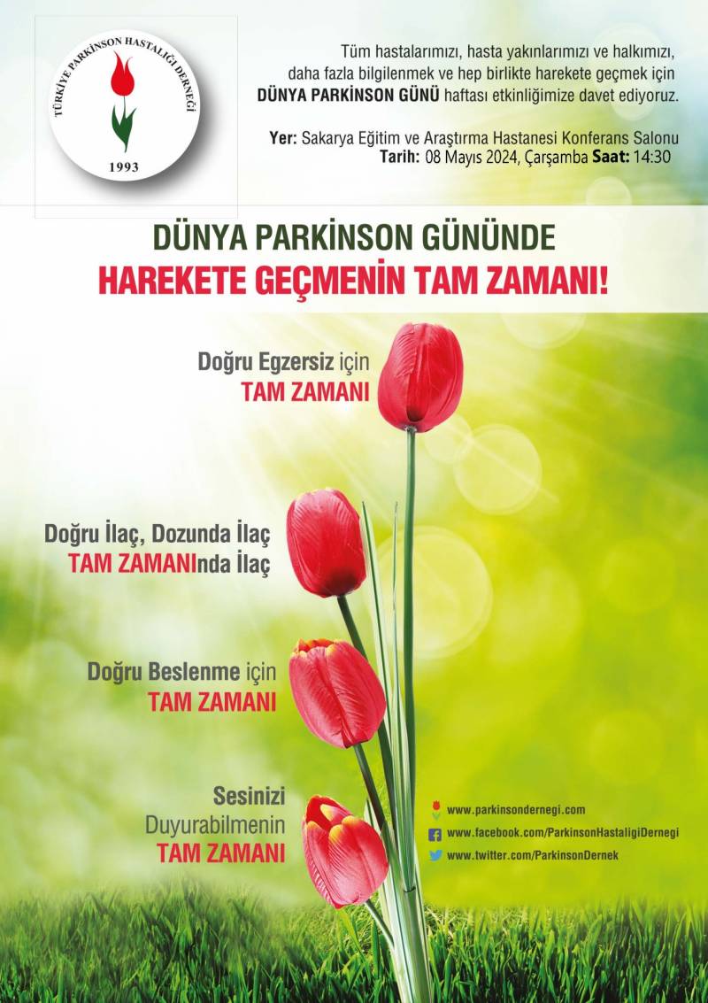 Sakarya Üniversitesi Tıp Fakültesi Nöroloji A.D ÖÄŸr. Üyesi Doç. Dr. YeÅŸim GÜZEY ARAS tarafından 8 Mayıs 2024 saat 14:30 da DÜNYA PARKİNSON GÜNÜ etkinliÄŸi Sakarya EÄŸitim ve AraÅŸtırma Hastanesi Merkez Konferans Salonunda gerçekleÅŸtirilecektir.