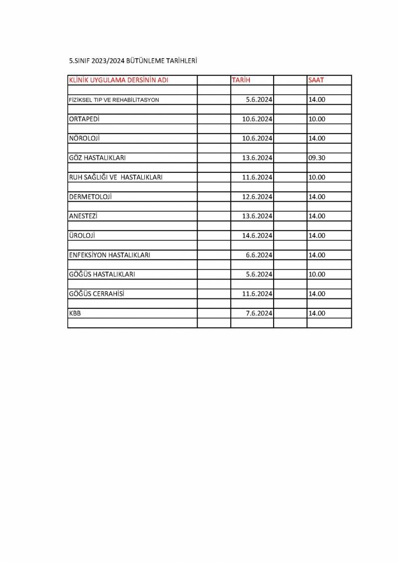 2023-2024 Dönem 5 Bütünleme tarihleri ekte belirtilmiÅŸtir.