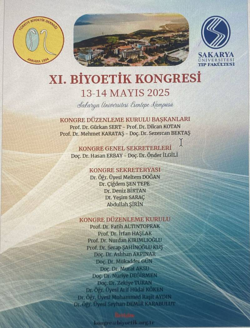 Türkiye Biyoetik DerneÄŸi ile Sakarya Üniversitesi Tıp Fakültesi tarafından düzenlenen XI. BİYOETİK KONGRESİ 13-14 MAYIS 2025’te Sakarya Üniversitesi Esentepe Kampüsü Hukuk Fakültesi Sebahattin ZAİM Konferans Salonunda gerçekleÅŸtirilecektir.