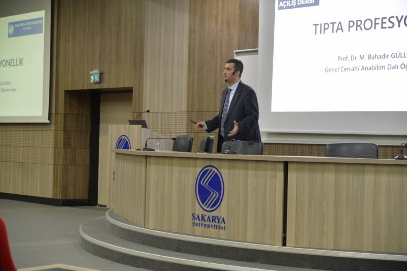 Programın açılış dersini Marmara Üniversitesi Genel Cerrahi Anabilim Dalı ÖÄŸretim Üyesi Prof. Dr. M. Bahadır GüllüoÄŸlu verdi. “Tıpta Profesyonellik” teması üzerine konuÅŸan GüllüoÄŸlu, tıp eÄŸitiminde teorik bilginin yanı sıra pratik beceri ve doÄŸru tutumun da büyük önem taşıdığını ifade etti. EÄŸitim sürecinde öÄŸrencilerin sadece bilgi edinmekle kalmayıp, mesleki farkındalık ve iletiÅŸim becerilerini de geliÅŸtirmeleri gerektiÄŸini anlattı.