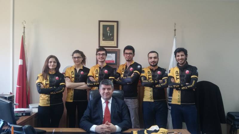 Tıp Fakültesi öÄŸrencilerinden oluÅŸan Bisiklet Grubu Tıp Fakültesi Dekanı Prof. Dr. Ramazan AKDEMİR'i ziyaret etti. Bisiklet sporunun Tıp Fakültesi öÄŸrencileri tarafından çok sevildiÄŸine dikkat çeken grup temsilcisi öÄŸrenci Necip Yarız; Dekan hocamızla böyle bir grubun kuruluÅŸunun sevincini paylaÅŸmak istedik" dedi. Bisiklet Grubu olarak bir çok sosyal aktivite düzenliyeceklerini belirten Yarız, öÄŸrenci arkadaÅŸlarımızın yanı sıra personel ve hocalarımızdan da katılım beklediklerini Tıp Fakültesi ailesi olarak "saÄŸlığa pedal atacaklarını" belirtti.