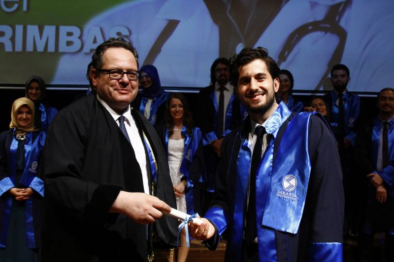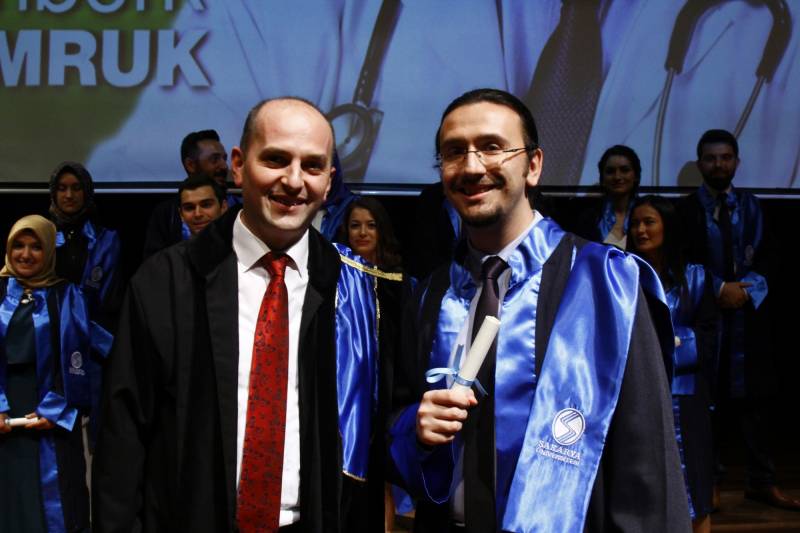 SAÜ Kültür ve Kongre Merkezi’nde gerçekleÅŸen törene Sakarya Cumhuriyet BaÅŸsavcısı Mustafa Ercan, SAÜ Rektörü Prof. Dr. Muzaffer Elmas, Sakarya İl Emniyet Müdürü Osman Babadağı, Sakarya Kamu Hastaneleri BirliÄŸi Genel Sekreteri Doç. Dr. Hasan Salih SaÄŸlam, ile Tıp Fakültesi Dekanı Prof. Dr. Ramazan Akdemir’in yanı sıra akademisyenler, mezun öÄŸrenciler ve yakınları katıldı.