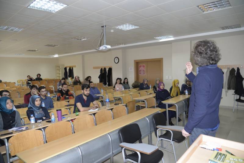 Sakarya Üniversitesi Tıp Fakültesi GeleceÄŸin Hekimleri öÄŸrenci topluluÄŸu tarafından düzenlenen GeliÅŸim Seminerlerinin ikincisi 7 Mart 2018 ÇarÅŸamba günü fakültemizde gerçekleÅŸtirildi. Åžair-yazar Ercan YILMAZ’ın “Edebiyatın Aynasında Tıp” baÅŸlıklı konuÅŸması öÄŸrenciler tarafından ilgiyle dinlendi. KonuÅŸmasında, hekimliÄŸin insanı anlama sanatı olduÄŸuna vurgu yapan Yılmaz, edebiyatın ve sanatın hekimin hastaya yaklaşımında olumlu etki yapacağını; Tıp, Edebiyat ve Felsefenin iç içe olduÄŸunu, hekimin entellektüel bilgi birikimini arttırması gerektiÄŸini ve hikmet sahibi olması gerektiÄŸini belirtti.