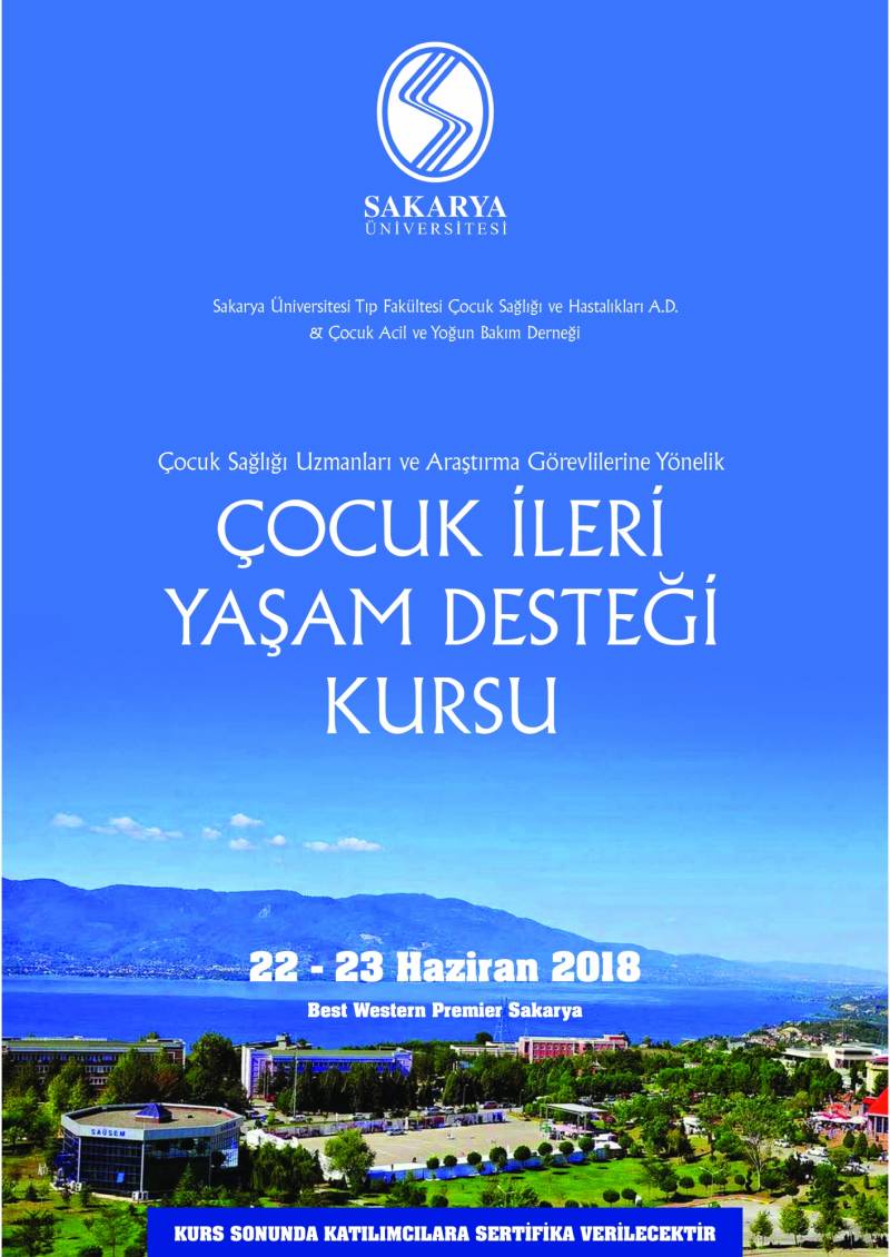 Sakarya Üniversitesi Tıp Fakültesi Çocuk SaÄŸlığı ve Hastalıklar› A.D. & Çocuk Acil ve YoÄŸun Bakım DerneÄŸi tarafından Çocuk SaÄŸlığı Uzmanları ile AraÅŸtırma Görevlilerine yönelik ÇOCUK İLERİ YAÅžAM DESTAĞİ KURSU 22-23 Haziran 2018 tarihlerinde Best Western Premier Sakarya Hotelde gerçekleÅŸtirilecek olup katılımcılara sertifika verilecektir.