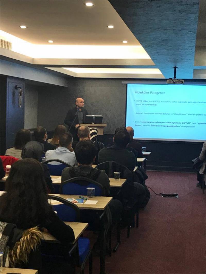 Sakarya Üniversitesi Tıp Fakültesi Ana Bilim Dalı ev sahipliÄŸinde 26 Aralık 2019 tarihinde “Hiperparatiroidi Tanı ve Tedavi” konulu toplantı gerçekleÅŸtirildi. Toplantıda Primer Paratisidizme Genel Bakış konusuyla Dr. ÖÄŸr. Gör. Taner DEMİRCİ, Lezyonlarda örüntülenme Yöntemleri Konusuyla Doç. Dr. Yasemiz GÜNDÜZ, Paratiroid Patalojilerine Nükleer Tıp Yaklaşımı konusuyla Dr. ÖÄŸr. Üyesi Huri Tilla İLÇE, Sekonder Hiperparatiroidzm konusuyla Doç. Dr. Hamad DHEIR, Paratiroid Cerrahisi Konusuyla Doç. Dr. Zülfü BAYHAN ve Görüntülenemeyen Paratiroid Patalojilerine Cerrahi Yaklaşım Konusuyla Prof. Dr. Belma KOÇER sunumlarını gerçekleÅŸtirdiler. Tecrübe ve deneyimlerin paylaşıldığı geniÅŸ katılımın olduÄŸu toplantının ardından akÅŸam yemeÄŸine geçildi.