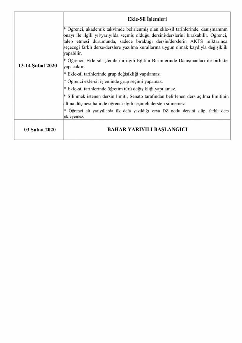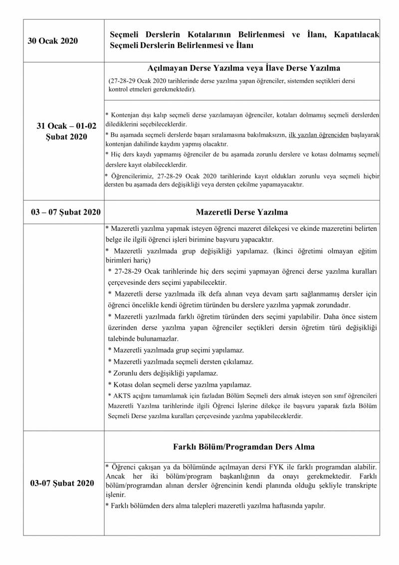 2019-2020 Öğretı̇m Yılı Bahar Dönemı̇ Derse Yazılma ve Kayıt Yenı̇leme